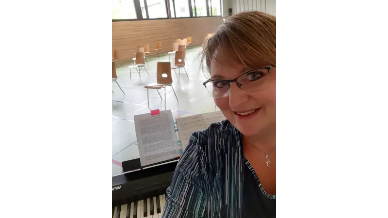 Karin leitet bei uns das Musikteam. Sie singt, spielt Klavier und leitet die Sängerinnen und die Gemeinde musikalisch an. Ihre Begeisterung für die Musik und ihr Klavierspiel sind ansteckend und dies motiviert, selbst einzustimmen.