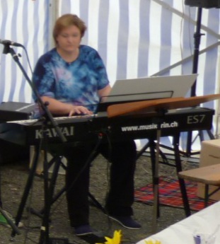 Karin ist für viele Projekte zu begeistern. So auch damals im Sept. 2014 für den Chilbigottesdienst in Egg ZH. Schwungvoll und mit Charme begleitete Karin vom E-Piano aus ihre Schulklasse. Mit ihren munteren und fetzigen Liedern (Blowing in the wind; Another day in paradise; Down by the riverside) berührten die Kinder nicht nur die Herzen der GottesdienstbesucherInnen, sie wärmten auch das herbstlich-kühle Chilbizelt sichtlich auf. Es war ein schöner Morgen - und für Kinder und Eltern ein Highlight. Danke Karin für wunderbares Wirken.